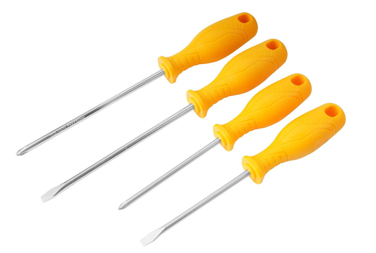 Tolsen Screwdriver Set 4 pcs Yellow Handle Sl5.5X100mm Sl6.5X150mm Ph1X100mm Ph2X150mm